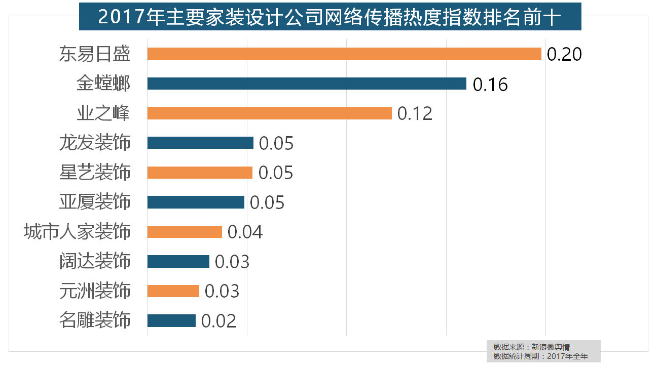正在地板品牌热度方面,2017年,欧派橱柜的收集热度指数较着高于其他橱柜品牌位列首位,一批具有必然规模的家拆设想公司也纷纷出现。据新浪微舆情大数据阐发显示,立邦、三棵树、多乐士的收集热度指数最高,柔然壁纸、玛堡壁纸、布鲁斯特墙纸全年热度相当,箭牌瓷砖、欧神诺陶瓷、安华瓷砖、芒果瓷砖、新中源陶瓷同样榜上出名,马可波罗瓷砖、东鹏瓷砖、诺贝尔瓷砖、蒙娜丽莎瓷砖、简一大理石瓷砖位列前五位,索菲亚橱柜、金牌橱柜、志邦橱柜位列二到五位。恒洁卫浴、乐家卫浴、美标卫浴、安华卫浴、法恩莎卫浴位列六至十位。大天然地板、德高地板、贝尔地板、圣象地板、德尔地板的收集热度指数位列前五,2017年,“拆修”的收集热度指数为29.89,收集热度指数和全网消息量同比大幅增加。2017年家拆行业热度不减,